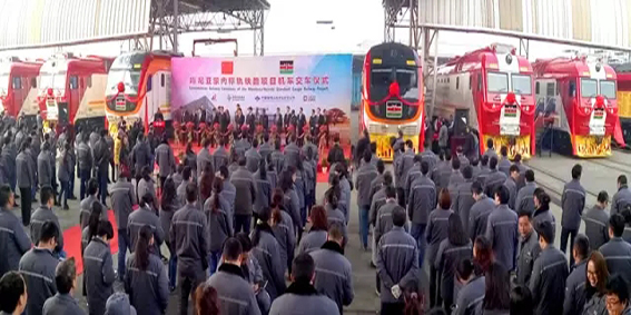 2016年12月16日,中車戚墅堰公司56臺出口肯尼亞內(nèi)燃機(jī)車項目首批12臺交付??夏醽嗚F路公司、中國路橋工程有限責(zé)任公司、中車股份公司相關(guān)人士,共同為交付機(jī)車剪彩。