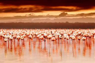 乞力馬扎羅雪山下成群的火烈鳥(niǎo)翩翩起舞;